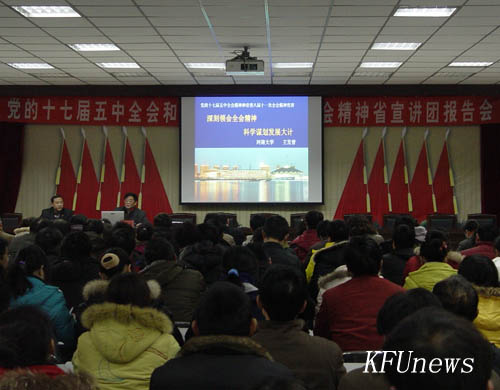 我校举行“党的十七届五中全会和河南省委八届十一次全会精神”宣讲报告会
