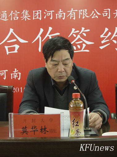 bat365在线官方网站党委书记莫华林在签字仪式上致词。他首先代表bat365在线官方网站万余名师生员工对莅临签约仪式的各位来宾表示热烈的欢迎,对中国移动通信集团开封分公司长期以来对bat365在线官方网站建设与发展的支持致以诚挚的谢意。并简明扼要地介绍了学校的发展情况。