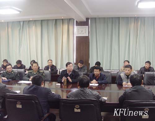 拜校长就我校征兵工作提出了要求,拜校长强调,大学生入伍对国家和个人的发展都有重要的意义,要求各单位高度重视这项工作,积极动员大学生报名参军入伍。开封市金明区武装部夏部长对我校以往征兵工作给予了充分肯定,并对今年大学生征兵的条件和要求进行了说明,具体安排了今年的大学生征兵工作。