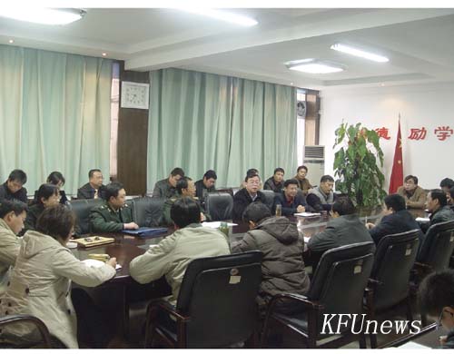 本站讯 11月22日上午,我校在晋安路校区行政楼二楼会议室召开了学生工作会议暨大学生征兵工作动员会,校长拜五四、副校长万是明出席了会议,学生处、团委全体人员及各院部党总支副书记和团总支书记参加了会议。