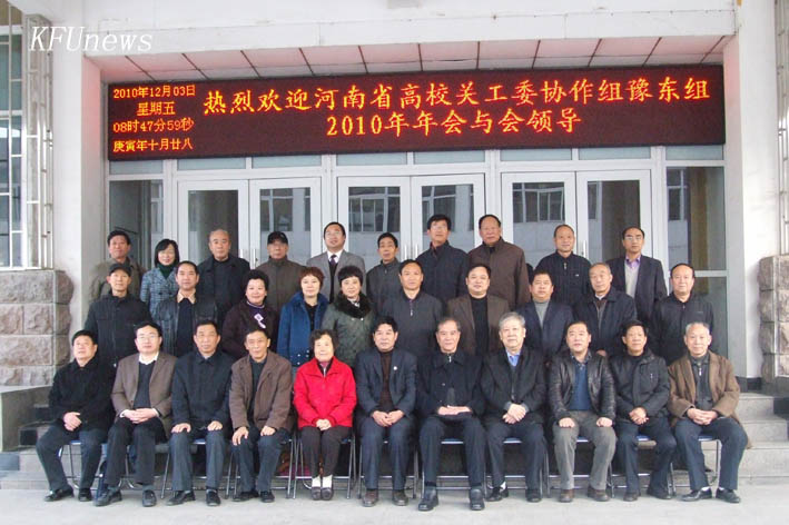 本站讯 12月3日上午,河南省高校关工委豫东协作组2010年年会在我校召开。省教育厅关工委副主任杨王善、秘书长毕明春;开封市关工委常务副主任茹建国、谢沛澍、办公室主任李平均;豫东协作组11所高校的关工委负责人出席了会议。我校党委书记莫华林参加会议并讲话;会议由党委副书记、副校长、关工委主任储建新主持。