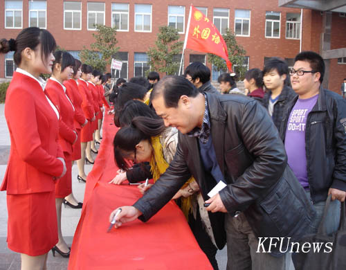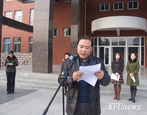 校党委副书记、副校长储建新在启动仪式上讲话。他说,我校举行千人签名,这将进一步完善我校的法制工作,对促进依法治校,依法执教工作的开展,有着很重要的意义。储书记指出,随着普法教育的深入,依法治理工作全面展开,为推进依法治校进程,维护校园稳定,促进学校改革发展和社会全面进步都发挥了积极重要的作用。
