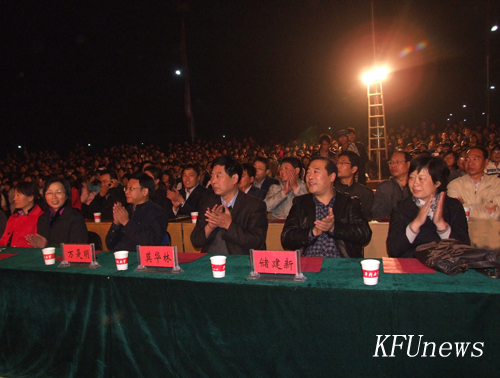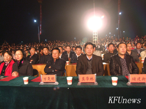 本站讯 10月21日晚,由新校区综合管理办公室、后勤服务总公司、校团委和学生处主办的“激情澎湃三十年”迎校庆文艺晚会在东京大道校区餐厅东广场举行。校领导莫华林、储建新、万是明,财政经济学院和人文学院党总支书记、院长以及相关部门负责人、各院部党总支副书记,新校区全体师生参加了晚会。