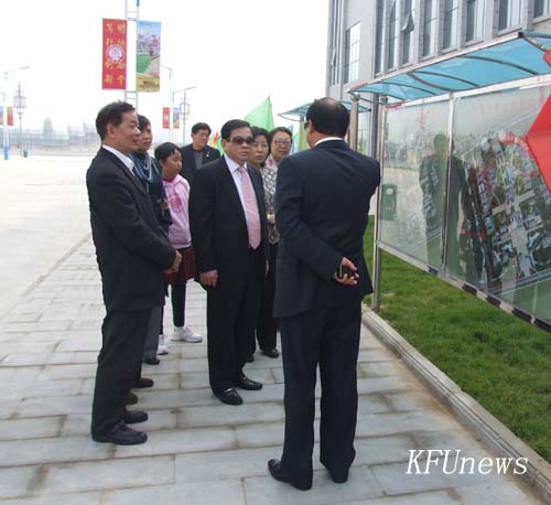 本站讯 10月24日上午,香港金鑫国际控股董事局主席、校董事会董事长李金松博士一行4人在校党委副书记、副校长储建新的陪同下参观了我校东京大道校区。