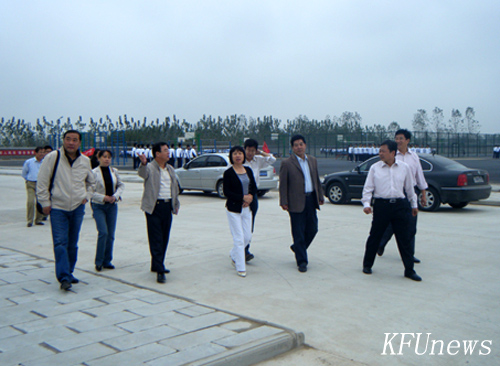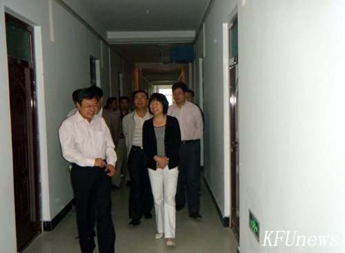 本站讯 9月19日上午,开封市正市级干部朱丽萍一行3人在我校领导莫华林、拜五四、储建新的陪同下视察、督导东京大道校区有关工作,学校领导向朱市长汇报了新校区建设情况。朱市长一行在东京大道校区进行了认真细致的调研工作,视察了学生餐厅、学生宿舍,并与餐厅、宿舍的管理人员进行了交谈,了解学生的食宿情况。