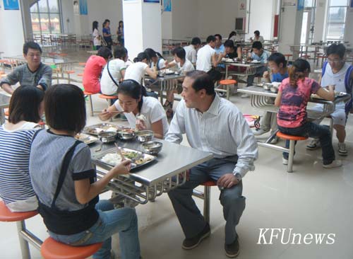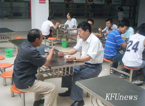 本站讯 我校财经学院、人文学院两院学生正式入住新校区,新校区各项设施也开始正式运转。学校领导非常重视刚搬入新校区学生的饮食,8月30日一大早,党委书记莫华林到新校区学生食堂视察工作,并与师生一起共进早餐,了解学生生活情况。8月28日中午,校领导储建新在新校区学生食堂和同学们一起吃我校乔迁新址第一顿午餐,8月29日,校领导储建新、范金梅到新校区学生食堂察看,并和师生一起吃晚餐,实地了解学生吃住情况。