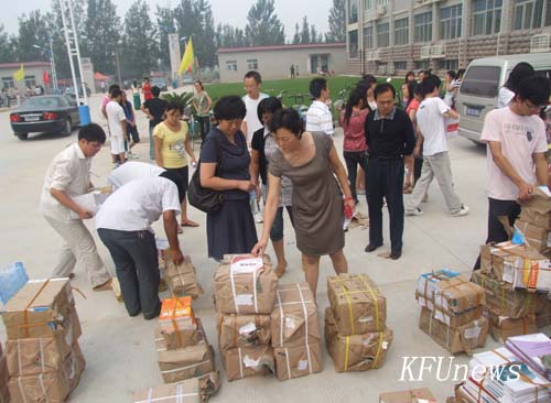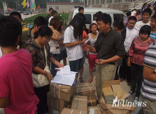 教务处全体登门发教材 新校区按时开课有保证