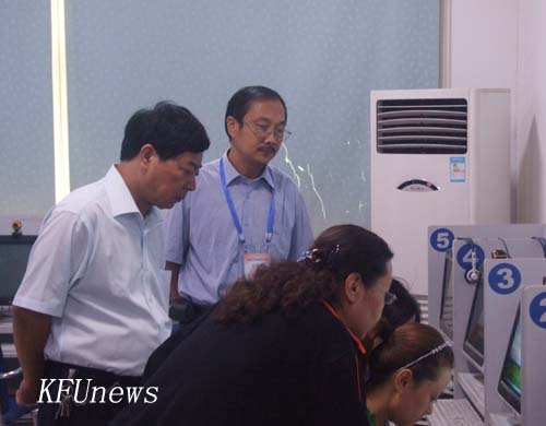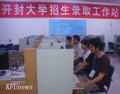 本站讯 7月20日上午,我校艺术类专科批次开始录取,本批次计划在河南省内录取3个专业342人,标志着我校2010年普通高招录取工作正式开始。校党委书记莫华林,校长拜五四先后在校纪委副书记赵海胜和招生工作办公室负责人曹玉芹、孙浦辰的陪同下到学校招生录取现场视察工作。莫书记和拜校长分别听取了我校高招录取工作情况汇报,并对切实做好今年学校的录取工作提出明确要求。