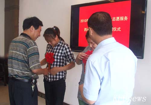 西部计划是国家鼓励大学生到祖国最需要的地方去,锻炼自身能力,实现自我价值,为社会做贡献的重要途径。今年4月,在校团委的积极组织下,我校共有46名同学踊跃报名参加此项计划。最后,按照政策要求,在结合个人的情况及服务地的工作要求的基础上,经过层层选拔,报团省委审批后,我校人文学院2010届毕业生郝会敏、吕晓洁两位同学脱颖而出,正式成为服务西部的志愿者,奔赴西部进行志愿服务。至本年,我校已经连续5年参与这项国家大型志愿服务计划,先后选送11名志愿者顺利赴西部工作。郝会敏、吕晓洁两位同学在校学习期间表现突出,成绩优异、兴趣爱好广泛、积极参与校园活动,曾多次获奖学金、优秀团员等荣誉。在座谈会中,两位志愿者说,能被录用为西部志愿者他们感到十分骄傲和荣幸,感谢学校和老师们三年以来的辛勤培育、谆谆教诲,在将来的工作学习生活中,会用实际行动报答学校、老师的教育培养、实现自我价值,回报学校和社会。