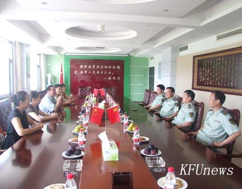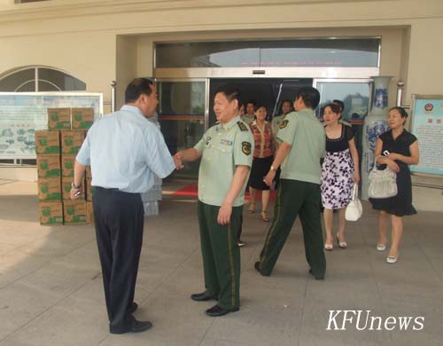 本站讯 7月30日下午,“八一”建军节前夕,校党委副书记、副校长储建新在党政办公室、宣传部、学工部和就业指导中心负责人的陪同下,带着慰问品及全校师生的拥军热情,到开封市军分区和开封市武警支队进行走访慰问,为部队官兵送去节日的祝福和问候。部队领导热情接待了我校慰问团,并对我校的走访慰问表示欢迎和感谢。我校慰问团和部队领导就以往开展的军民共建工作进行了深入交谈,并就今后的共建工作交换了意见。