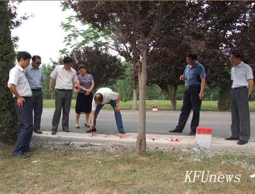 本站讯 6月4日下午,校防汛突击队总队长、党委副书记、副校长储建新,校防汛突击队政委、纪委书记、工会主席范金梅带领防汛突击队副总队长及各防汛突击队队长到我校防汛地段实地考察,并要求大家要高度重视防汛工作,加强领导,周密组织,明确任务,做好预案,确保防汛物料到位,建立队员通讯网络,扎实做好各项准备工作,确保胜利完成今年的防汛工作。