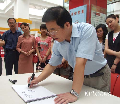 开幕式结束后,校领导和嘉宾在工美学院领导的陪同下观看了毕业设计作品展,莫书记、拜校长对学生作品给予了高度评价,同时对毕业生提出了希望,并为本次作品展题词留念。