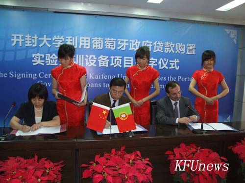 参加签字仪式的省市领导有:开封市人民政府正市长级干部朱丽萍,省财政厅外资处处长张惠,省财政厅外资处处长(调研员)李柏强,省发改委外资处处长李桓,省教育厅高教处副处长岳德胜,市财政局副局长孙国强,市发改委副主任方守成;葡方代表有:葡萄牙DEIBAR公司代表VITOR先生,北京金洲公司代表丁巍先生;采购代理方代表中国机械设备进出口公司耿学勤女士;校方代表党委书记莫华林,校长拜五四及全体校党委委员、校领导;我校相关院(部)、行政部门负责人参加了签字仪式。签字仪式由副校长何世玲主持。