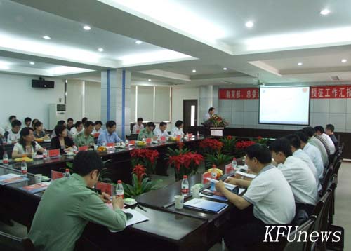 本站讯 5月25日上午,教育部、总参谋部高校毕业生入伍预征工作督察组成员、教育部高校学生信息咨询与就业指导中心主任刘大为、济南军区司令部组织动员部参谋王新利、河南省教育厅学生处处长张光明一行9人莅校督查我校毕业生入伍预征工作,并与我校校领导莫华林、拜五四、储建新、万是明、赵辉、何世玲,以及相关部门负责人座谈,会议由副校长万是明主持。