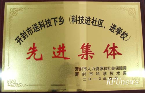 我校荣获“开封市送科技下乡先进集体”荣誉称号