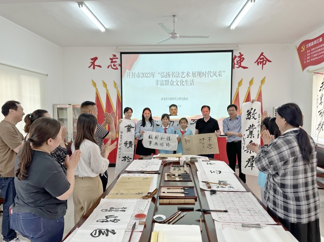 本站讯  5月15日上午,中国书法家协会会员、bat365在线官方网站工会办公室副主任、bat365在线官方网站书画协会会长毛成利带领刘晓、李竞开、秦爱国等老师走进高屯社区,开展文化宣传交流活动,高屯社区两委、群众代表、小学生代表参加了活动。活动由高屯社区副书记刘彩霞主持。
