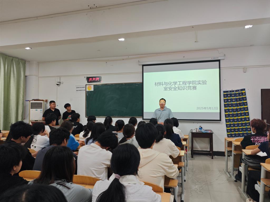 本站讯  在职业教育活动周与全国防灾减灾日期间,5月12日,材料与化学工程学院在3号楼301教室开展“以赛筑防 共守安全”实验室安全知识竞赛,院党总支副书记武志远出席活动并致辞,6支参赛队伍及100余名学生观众参加活动。