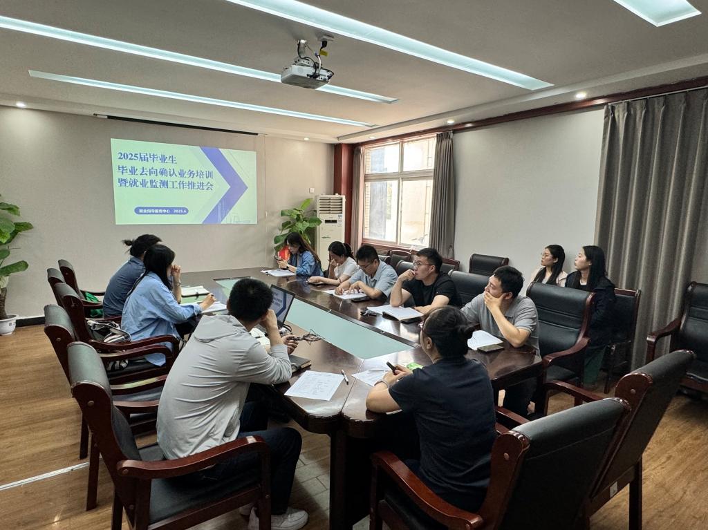 本站讯  6月4日上午,我校在行政楼121会议室组织召开2025届毕业生毕业去向确认业务培训暨就业监测工作推进会。就业指导服务中心相关人员及全体毕业班辅导员参加会议。