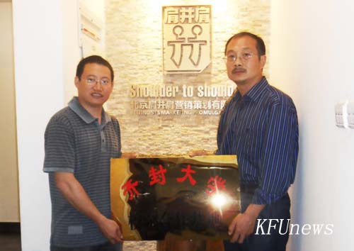 本站讯 6月1日上午,工艺美术学院一行4人在魏跃进院长的率领下,来到北京肩并肩营销策划有限公司郑州分公司,与该公司总经理王兴国签订了校企合作协议。