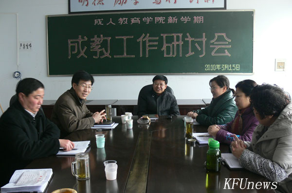 本站讯 3月15日上午,副校长万是明来到成人教育学院主持召开新学期成教工作研讨会,学院科级以上干部参加会议。
