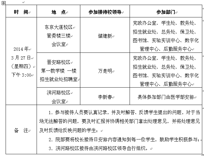 2014年3月27日校长接待日工作安排