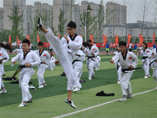 随后,bat365在线官方网站学生代表分别进行了跆拳舞、啦啦操和足球表演的大型文体表演,他们以整齐的步伐、标准的动作、飒爽的英姿展现了师生们精诚团结、奋发向上的精神风貌。