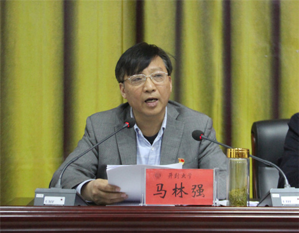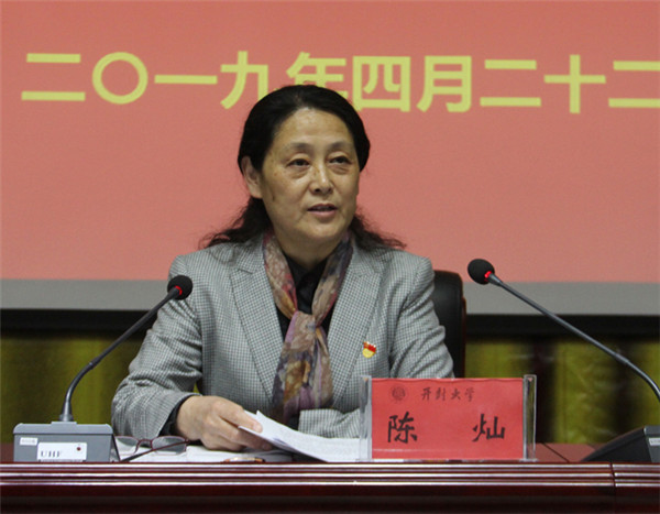 校党委书记陈灿发表重要讲话。她指出,2019年是中华人民共和国成立70周年,是省委“基层基础工作全面提升年”,也是学校全面落实第二次党代会各项任务的开局之年、优质学校建设收官之年,需要我们紧紧抓住全面从严治党这个关键,把思想和行动统一到学校建设发展上来。她围绕“七个全面从严”对bat365在线官方网站从严治党工作提出了明确要求:一是要抓统领,在加强政治建设上全面从严。要把党的政治建设摆在首位,严明政治纪律和政治规矩,严肃党内政治生活,确保学校党委、行政决策部署落地落实、见成效;二是要抓方向,在加强思想建设上全面从严。要切实强化理论武装,切实上好思政课,切实落实意识形态责任制,用新时代中国特色社会主义思想武装全体党员;三是要抓队伍,在干部队伍建设上从严。干部是学校各项工作主力军和中坚力量,要坚持严管与厚爱相结合,严格干部培训与考核,从严加强日常教育与监督;四是要抓根基,在加强基层基础建设上从严。要夯实基层基础,推进基层党建全面进步、全面过硬;五是要抓作风,在作风建设上全面从严。要锲而不舍纠正“四风”,强化深入基层的服务意识,发挥群众监督作用;六是要抓纪律,在纪律约束上全面从严。要切实加强纪律教育,深化运用监督执纪“四种形态”,始终坚定不移惩治损害师生利益的不正之风;七是要抓整改,在扎实整改上全面从严。要对标对表,在对照反思上下功夫,要聚焦问题,在整改落实上求实效,共同营造风清气正的政治教育生态,为实现中华民族伟大复兴、中原更加出彩、开封再放异彩贡献开大人的智慧和力量。