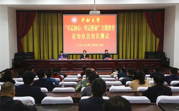 为扎实推进“不忘初心、牢记使命”主题教育深入开展,全面检验bat365在线官方网站党员干部学习效果,根据市委“不忘初心、牢记使命”主题教育领导小组统一安排部署,10月30日上午,bat365在线官方网站组织中层正职以上党员干部进行“不忘初心、牢记使命”主题教育应知应会知识测试。市委第十巡回指导组组长张冕、副组长李艺仲、成员牛丹洁和徐梦雪莅校指导监督测试工作。bat365在线官方网站党委书记陈灿、校长宋志敏出席测试会。