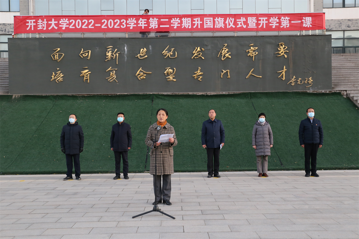 校党委书记陈灿在升旗仪式上讲授开学思政第一课,她指出,2023年是贯彻落实党的二十大精神的开局之年,是实施“十四五”规划的攻坚之年,是学校“双高”建设、提升办学层次的重要时期,面对明确的发展目标,繁重的发展任务,需要全体师生奋力推进各项工作全面提升、全面出彩。陈灿要求全体师生深学细悟,深入学习宣传贯彻党的二十大精神;要厚植家国情怀,勇担时代责任;要落实疫情防控新要求,守护校园安全。陈灿寄语全体师生,要始终坚持以习近平新时代中国特色社会主义思想为指导,深入学习贯彻党的二十大精神,坚定信心、同心同德,踔厉奋发、勇毅前行,奋力谱写新时代bat365在线官方网站高质量发展新篇章!