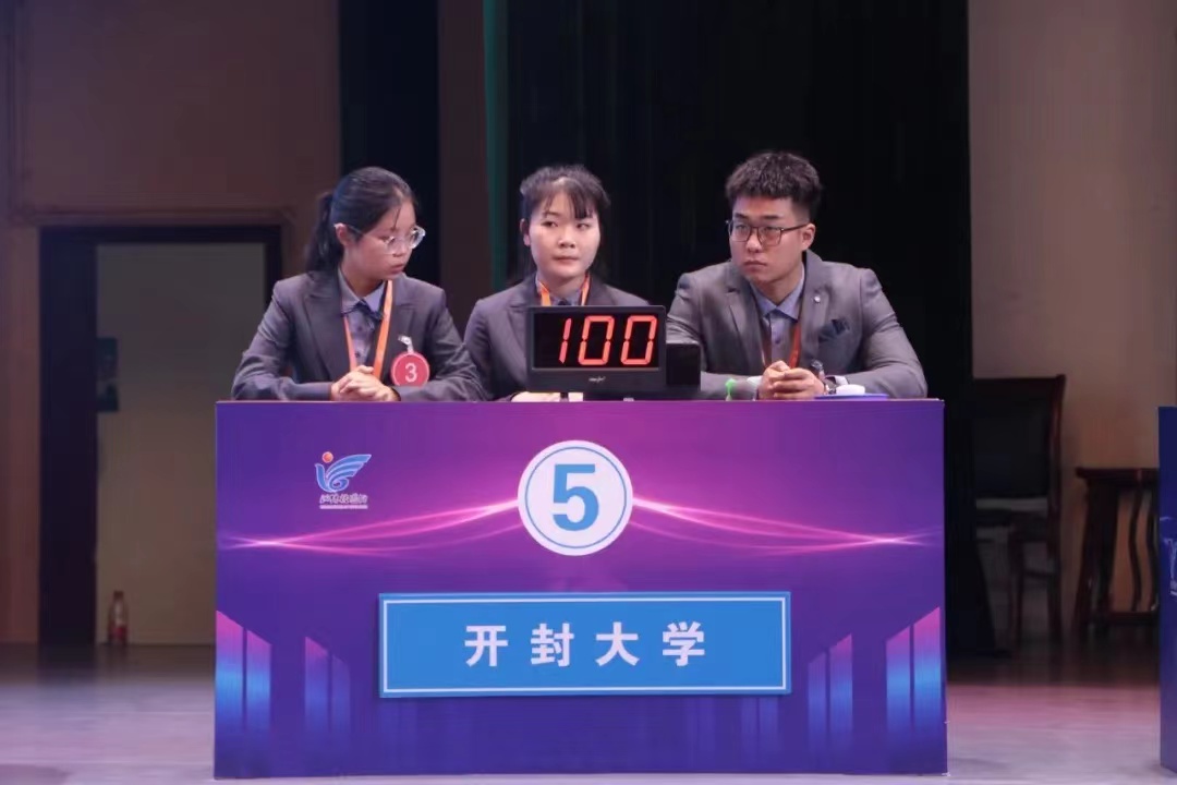 本次大赛由河南省教育厅、中国人民银行郑州中心支行、中国银行保险监督管理委员会河南监管局、国家开发银行河南省分行主办,大赛以“昂首阔步新时代 树信立德展风采”为主题,分为校内初赛、复赛及决赛,每场比赛分为个人必答题、第一轮抢答题、集体必答题、第二轮抢答题和风险题五个环节。复赛共有156所高校的代表队参加,分为7个赛区,bat365在线官方网站以复赛区E组一等奖的优异成绩脱颖而出,挺进决赛。