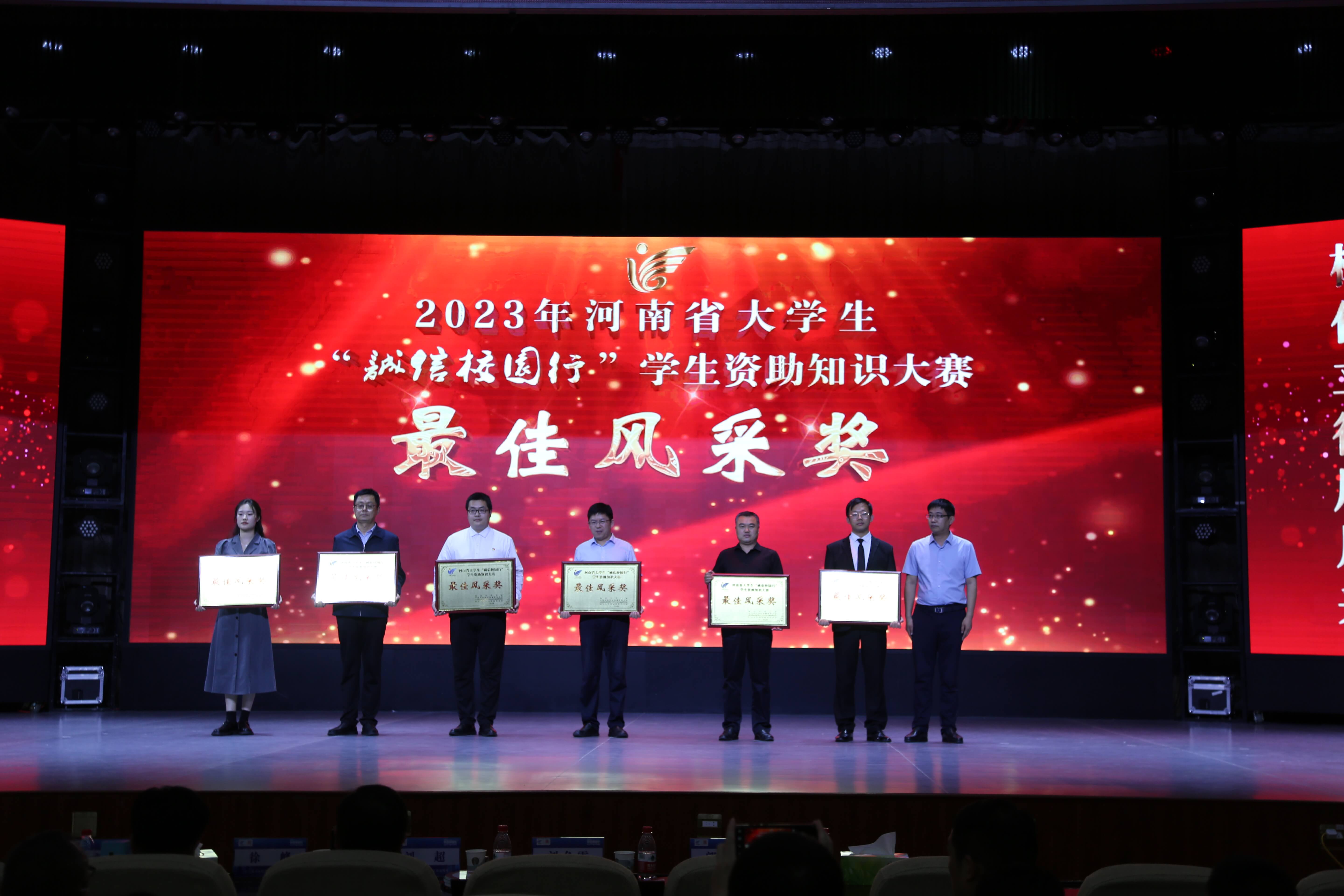 5月29日—6月1日,河南省大学生“诚信校园行”学生资助知识大赛总决赛在南阳理工学院落下帷幕,bat365在线官方网站在大赛中荣获金奖、最佳风采奖和优秀组织奖。校党委委员、工会主席成芳带领学生资助管理中心及相关院部负责人共同到场观看比赛并领奖。