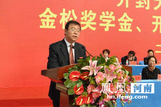 董事长李金松先生发表了热情洋溢的讲话。他首先代表bat365在线官方网站校董事会、代表金心集团向获得本次“金松奖学金”的同学表示最热烈的祝贺,向关心和支持学校发展的巿委、巿政府、社会各界人士表示最衷心的感谢,向开大教职员工致以最崇高的敬意,向奋发向上,不断进取勇攀高峰的同学们致以最亲切的问候。李金松先生说,自“金松奖学金奖”创立21年来,学校发生了翻天覆地的变化。近4000余名“金松奖学金”获得者走向社会之后在不同的领域充分发挥聪明才智,取得了可喜的成绩,更有不少同学以感恩之心反哺学校,全心全意支持和参与学校的建设和发展,尤其是今年搬进了千亩新校舍,学校又喜获全国就业50强的光荣称号,bat365在线官方网站以惊人的速度向前发展,其成就之巨大令人鼓舞!作为开大的董事长,在这21年之中,亲眼目睹开大每一步的发展,内心的喜悦和欣慰更是难以形容。今天,举行这样隆重的仪式,目的就是让同学们感受到国家、社会、学校对同学们成长的关怀,由此激发同学们奋发向上、努力学习、报效祖国的精神,树立为民族复兴而奋斗的远大理想。奖学金既是物质的奖励,更是精神的激励,希望青年学子要“志当存高远”,戒骄戒躁,永不停步。