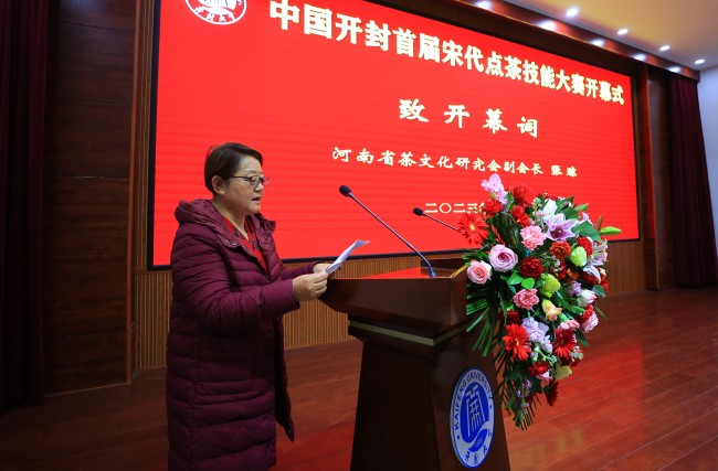 张琼代表河南省茶文化研究会对首届宋代点茶技能大赛在bat365在线官方网站顺利启动表示热烈地祝贺,希望bat365在线官方网站以举办此次大赛为契机,充分发挥开封宋文化这一优势,全力推动开封茶文化产业高质量发展,促进茶旅融合,让开封的茶文化在新时代绽放新的光彩,并预祝本次大赛圆满成功。