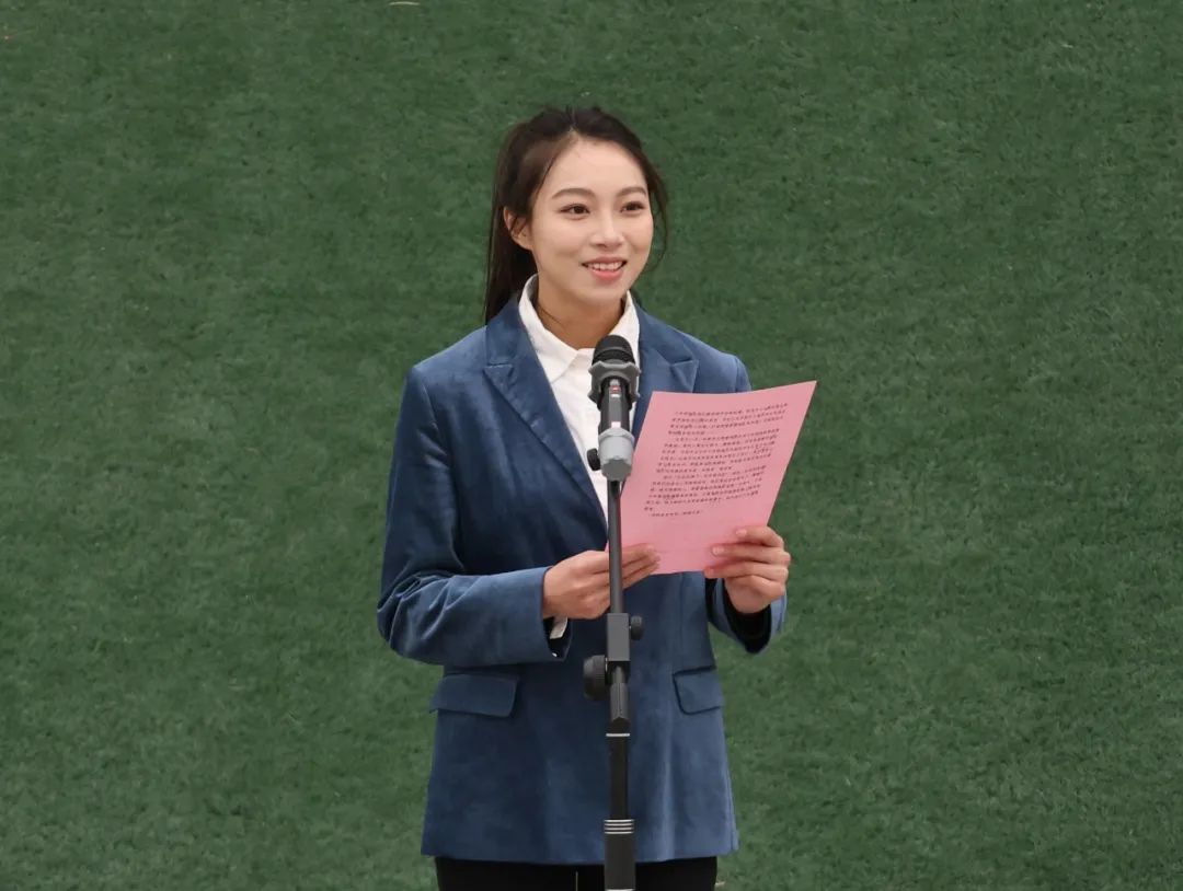 升国旗仪式上,旅游学院2022级学生孙梦璐、科研外事处处长吴玺玫分别作为学生代表和教师代表进行发言。