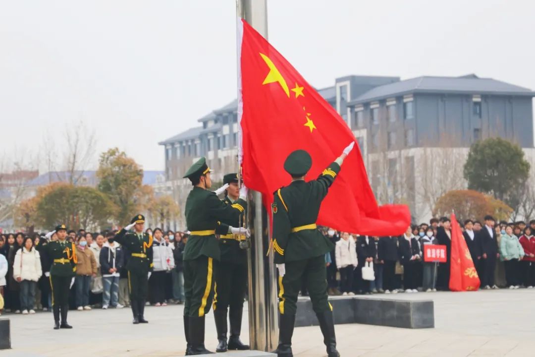 国旗护卫队从校党委书记谭贞手中接过国旗