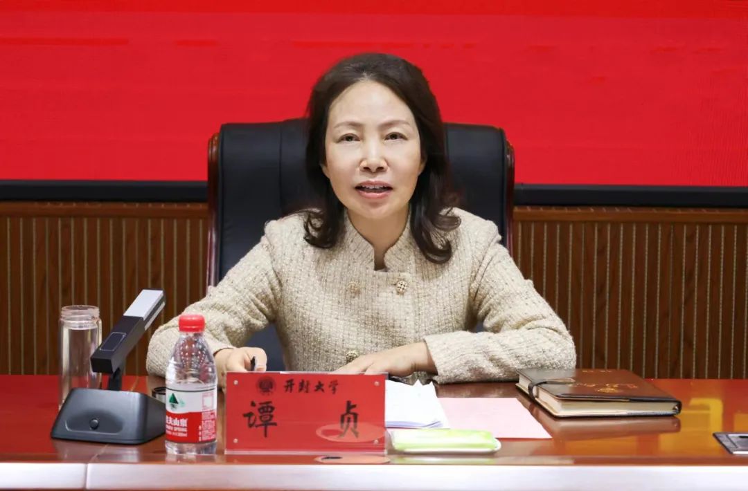 谭贞在讲话中充分肯定了马克思主义学院在夯实立德树人关键课程以及推动学校高质量发展中作出的努力和贡献,并就深入学习贯彻落实习近平总书记有关高校思政课建设重要讲话精神,落实思政课立德树人关键课程作用提出四点要求。一要提高站位,充分认识思政课的重要地位。二要践行教育家精神,建强师资队伍。要模范践行教育家精神,努力成为“政治强、情怀深、思维新、视野广、自律严、人格正”的好老师。三要拉高标杆,提升课程质量。围绕学校“双高”建设与办学层次提升,加强交流研讨,找准思政课的“痛难点”“发力点”“着力点”,高质量推进思政课建设。四要改革创新打造特色品牌。围绕“大思政课”系统工程,坚持“八个相统一”的要求,推进思政课程与课程思政相融合,开展思政课实践课堂,运用好现代信息技术,挖掘红色资源,让思政课“立”起来、“动”起来、“活”起来、“亮”起来。