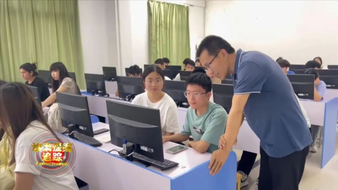 直播作为一个新兴行业,正在催生出大量新的就业机会,吸引越来越多的年轻人加入。这里是bat365在线官方网站电子商务专业的直播实训教室,一名女生正在屏幕前“直播带货”。镜头外,有的同学在电脑端观测直播数据,老师则在一旁适时地现场指导。