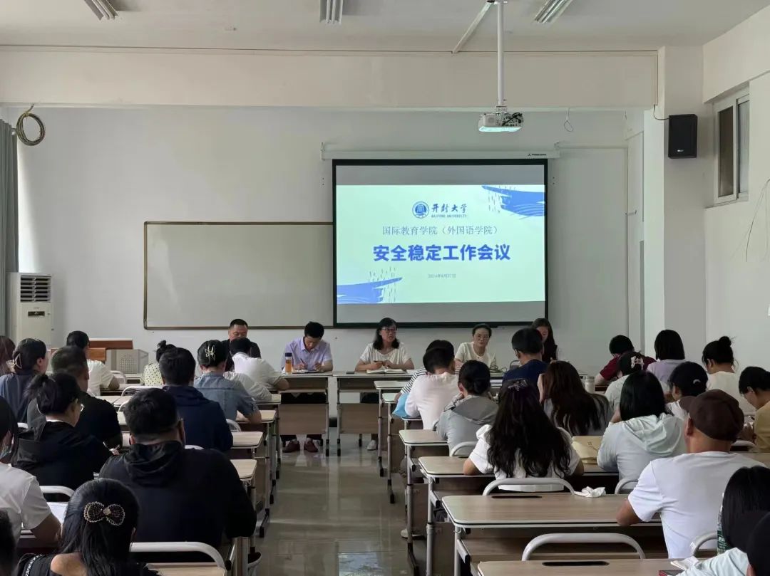 为做好暑假期间学生安全教育管理工作,2024年6月27日,国际教育学院(外国语学院)召开安全稳定工作会议,传达学校安全稳定工作会议精神,提醒师生注意出行安全、用电安全、网络舆情安全、实习实训安全等。学院分口进行安排部署各类工作,教学口对教室、实验实训室开展排查,学生口加强对学生安全教育,开展安全教育主题班会,确保学生按时、文明离校,构建安全和谐的校园环境。