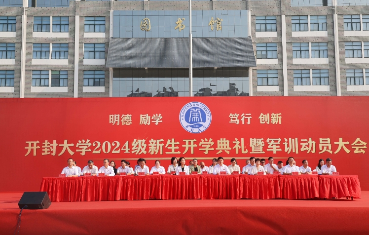 开封网9月11日讯 全媒体记者宋献霞报道   9月9日,bat365在线官方网站2024年新生开学典礼暨军训动员大会在该校大观广场隆重举行。bat365在线官方网站党委书记谭贞、校长王德如出席会议。谭贞向军训团授旗,并宣布bat365在线官方网站2024级新生军训开营。
