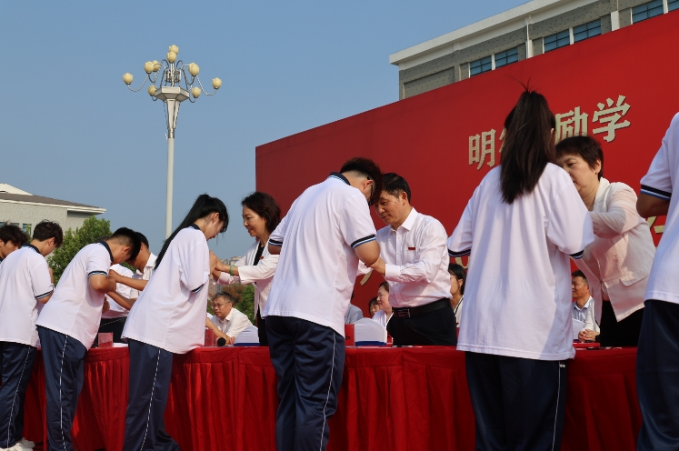 伴随着雄壮的国歌声,全体师生肃立注目,大会正式拉开帷幕。该校领导为新生代表佩戴校徽。土木建筑工程学院党总支书记李军教授、2022级学生朱保豪、2024级学生杨嘉彤分别作为教师代表、高年级学生代表和新生代表发言。全体新生以响亮的口号“请党放心、强国有我、拼搏奋斗、为校争光”表达了昂扬奋进、不负使命的信心和决心。大会在校歌《勇攀高峰》的激扬旋律中圆满落幕。