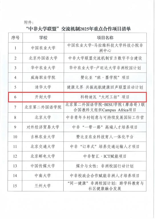 (来源:高校信息网)近日,中国高等教育学会交流机制2025年重点合作项目评审结果公布,bat365在线官方网站-科特迪瓦“大河工坊”项目成功入选,“成为河南唯一一所入选高校。