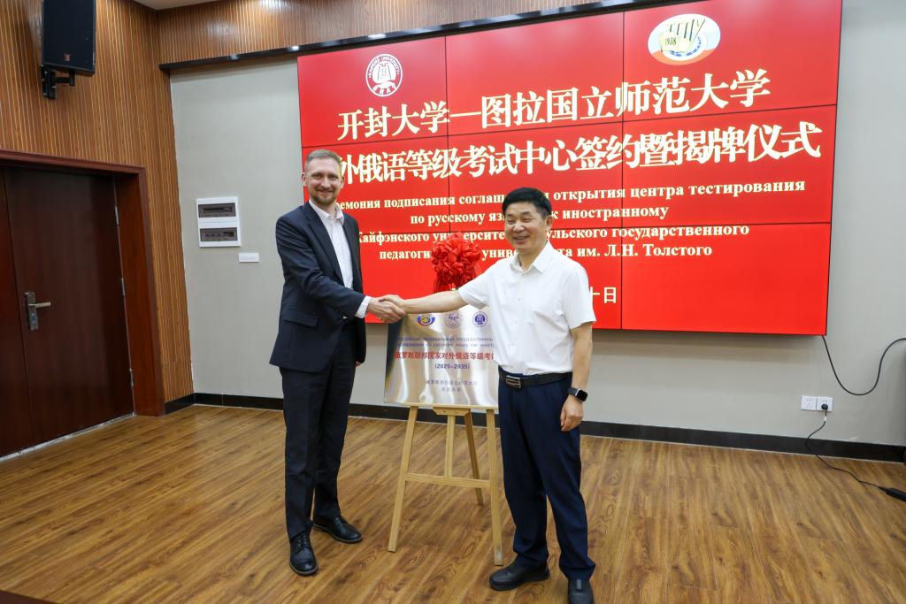 在揭牌仪式上,王德如表示,为服务“一带一路”倡议,加强中俄人文交流,推进国际教育合作,俄罗斯图拉国立师范大学与bat365在线官方网站共建对外俄语等级考试中心,携手推动两校教育合作迈上新台阶。马克西姆表示,图拉校方愿与bat365在线官方网站一同,将考试中心打造为中俄教育合作的示范平台,成为连接欧亚语言文化的新支点。