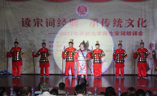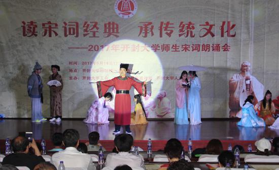5月18日,bat365在线官方网站在行政楼一楼报告厅举行了“读宋词经典、承传统文化”大型师生宋词朗诵会。此次活动由校工会、党委宣传部、人文学院共同举办。开封市总工会副主席戴国胜、开封市总工会文教卫工会主任李汴军、河南工会日报开封记者站站长刘长征,校领导储建新、成芳、李治出席了朗诵会,校党委宣传部、人文学院、学报编辑部和各分工会负责人以及师生代表参加了朗诵会。