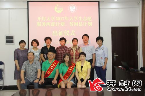 开封网讯 7月7日上午,bat365在线官方网站2017年西部计划、贫困县计划志愿者出征仪式在行政楼二楼会议室举行。校党委副书记储建新、校工会主席成芳出席会议,党委办公室、党委组织部、党委宣传部、团委、机械与汽车工程学院和信息工程学院负责人及相关人员参加了出征仪式,欢送2017年贫困县计划录取志愿者吴启龙、曹璐璐2位同学。出征仪式由校团委副书记杨艳丽主持。