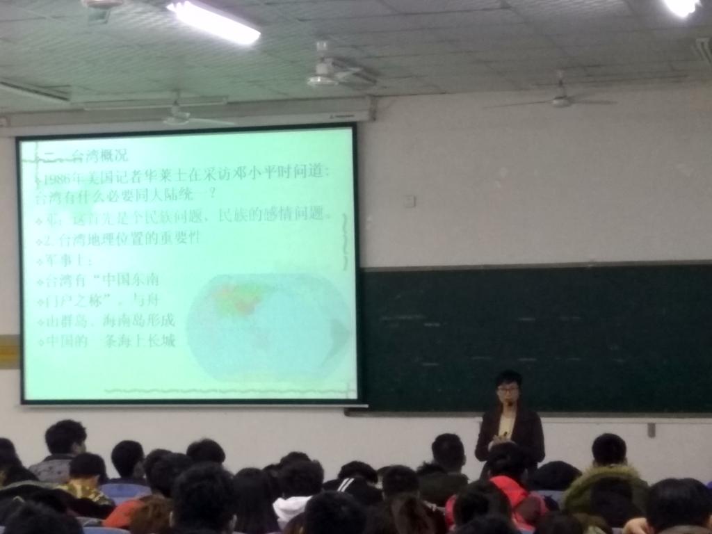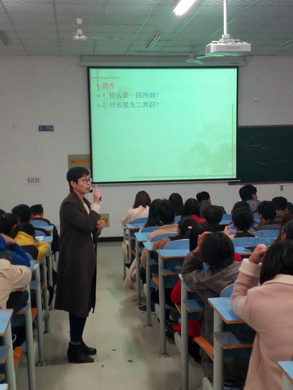 讲座开始党的十九大报告对祖国统一的描述,张老师深入浅出的提出问题、展开讨论、进行分析、在丰富的资料和严谨的逻辑分析下,展现了“一国两制”的历史发展与现状,以及对未来的愿景。事实充分证明只有中国的强大,才能实现祖国的统一,只有中华民族的每一代人都勇于担当起自己的历史责任,才能让中华民族屹立于世界民族之林,实现中华民族的意志。