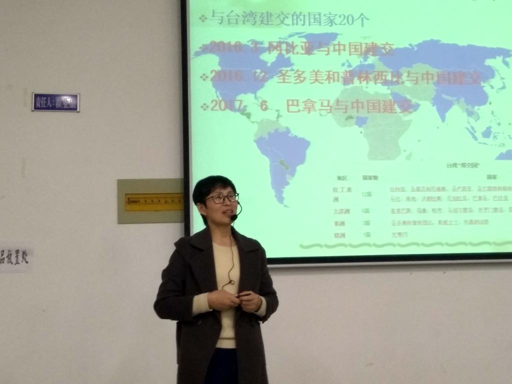 11月23日,思想政治理论教研部副教授张西茹在15号楼203室开展讲座,讲座的题目为《解读党的十九大报告——坚持“一国两制”,推进祖国统一》,讲座现场座无虚席,同学们认真聆听张西茹老师带来的精彩讲座。