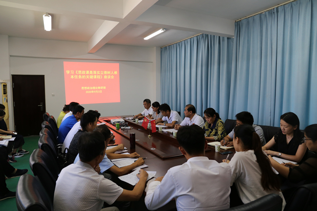 2020年第17期《求是》杂志刊登了习近平总书记的署名文章《思政课是落实立德树人根本任务的关键课程》,为了进一步巩固和提升学习效果,思想政治理论教研部于9月3日下午在行政楼418会议室举办了学习座谈会。校党委副书记储建新,校党委委员、党委宣传部部长陈岩,学生工作部部长孙勇,教务处处长冯天才,校团委副书记吴文静,全体思政课教师和部分学生代表参加了座谈会。座谈会由思想政治理论教研部主任常素芳主持。