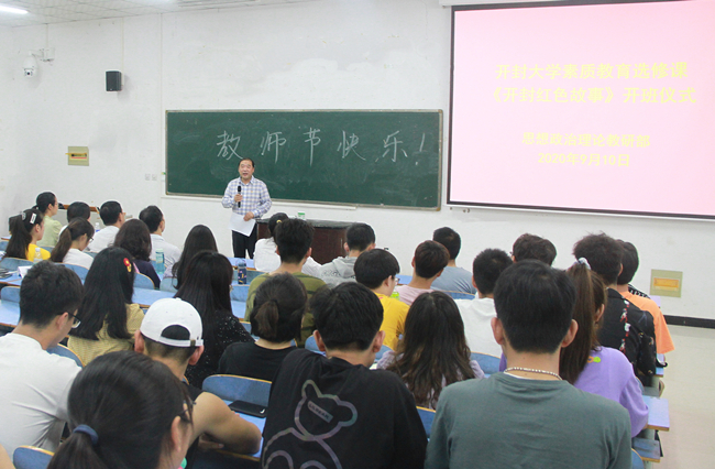 9月10号晚,思政部组织开设的素质选修课《开封红色故事》在15号教学楼121教室开课。校党委副书记储建新,校党委委员、党委宣传部部长陈岩以及思政部