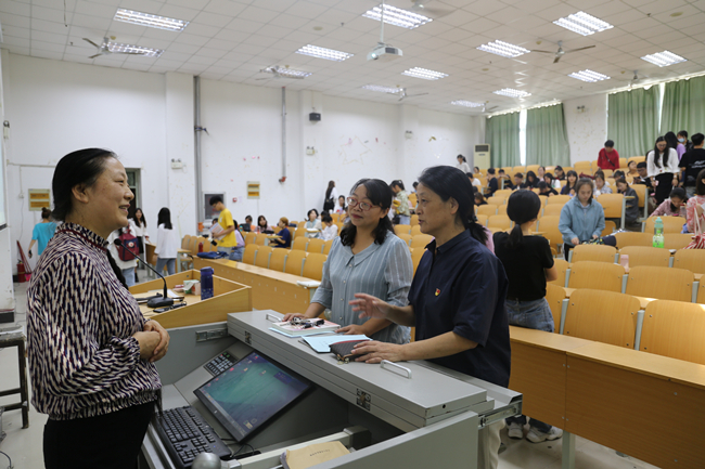 9月18日上午,校党委书记陈灿到17号教学楼508教室,听取了思想政治理论教研部张兰玲教授的《毛泽东思想和中国特色社会主义理论体系概论》课程讲授。思想政治理论教研部负责人等一同听课。