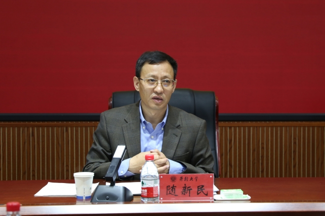 4月18日下午,省委教育工委、省教育厅2023年春季学期思政课“大听课 大调研”第五专家组莅临我校对学校思政课建设情况进行调研并召开座谈会。校党委书记陈灿、校长宋晓炜出席座谈会并讲话,相关职能部门负责人、马克思主义学院班子成员、思政课教师代表、学生代表参加座谈会。座谈会由校党委副书记储建新主持。